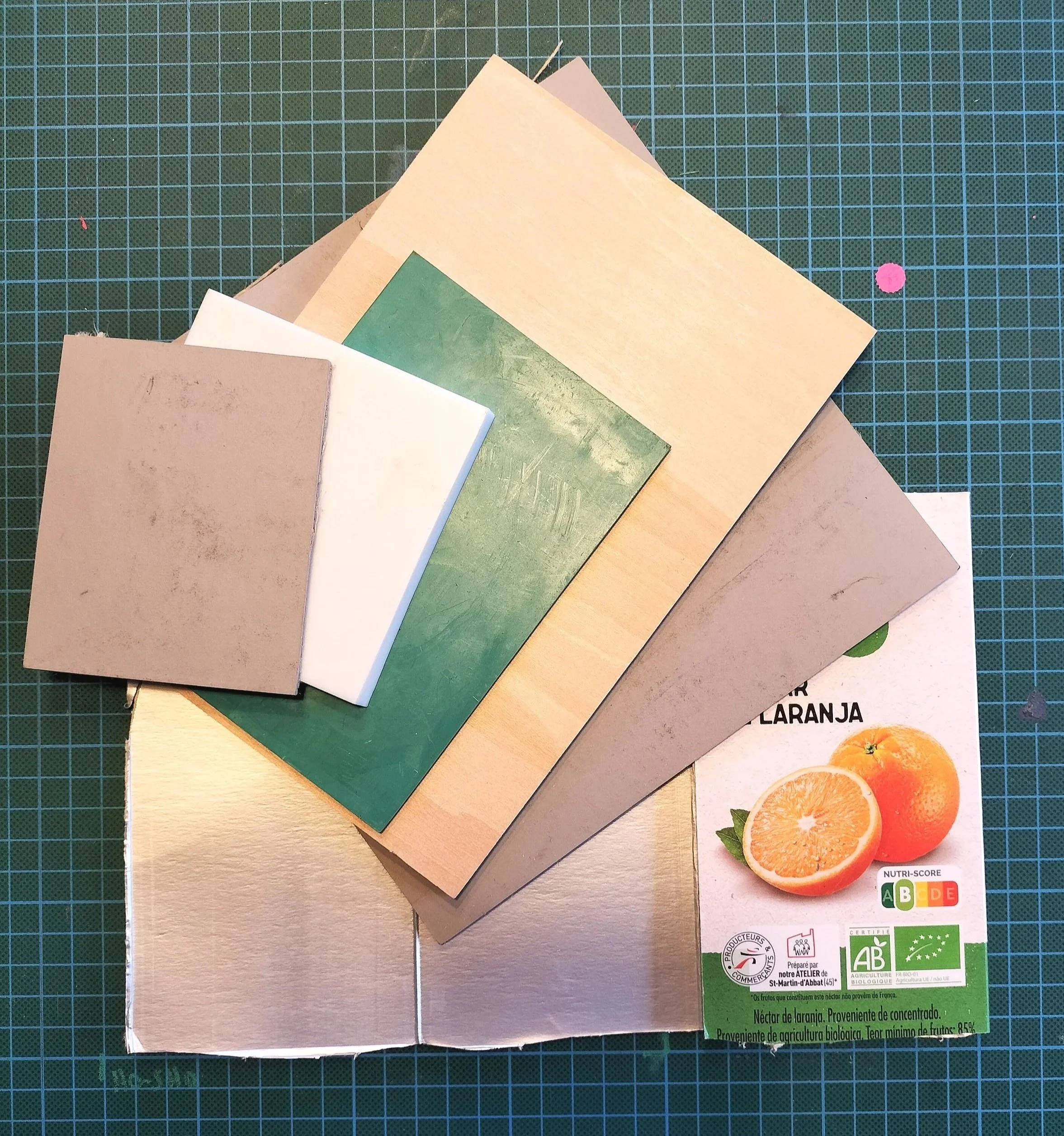 So first, you'll need printmaking plates or blocks, to create your matrix. Printmaking is basically creating big stamps, so let’s see what you can use at home : linoleum, wood, vinyl, rubber - for the relief printmaking family - and acetate, perspex or even milk carton for recycled printmaking!